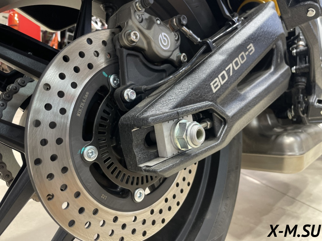 ПЕРЕДНЯЯ ТОРМОЗНАЯ СИСТЕМА - Два плавающих тормозных диска 320мм, 2 радиальных четырёхпоршневых суппорта Brembo